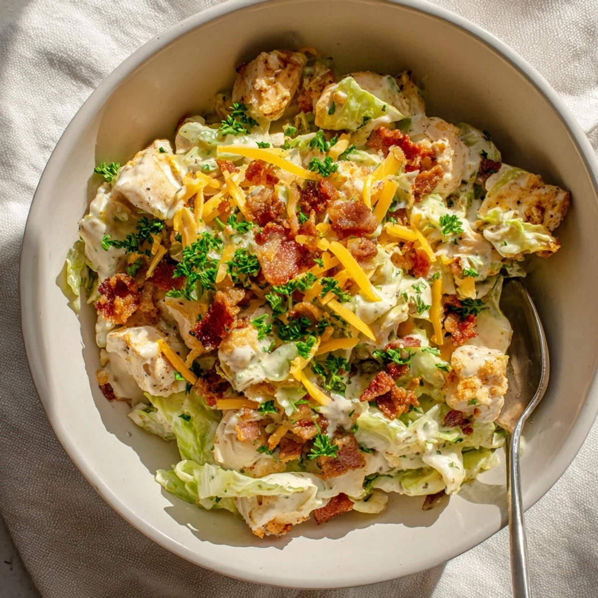 These hearty bowls combine tender chicken pieces and crispy bacon with thinly sliced green cabbage, all enveloped in a rich, tangy ranch cream sauce. The dish comes together in under an hour, making it perfect for busy weeknights when you want something satisfying without spending hours in the kitchen.