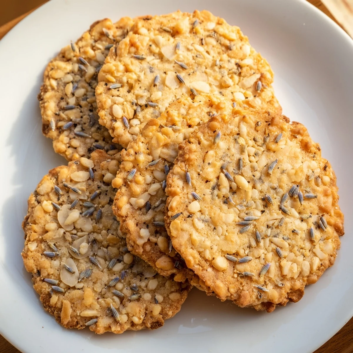 These delicately crisp cookies combine the floral essence of culinary lavender with golden honey sweetness, creating an elegant treat perfect for afternoon tea. The satisfying crunch comes from toasted almonds or pecans blended with light puffed rice cereal, while sea salt balances the floral notes. Simple to prepare in just over 30 minutes, these American-European fusion treats offer sophisticated flavor that pairs beautifully with Earl Grey or chamomile tea.